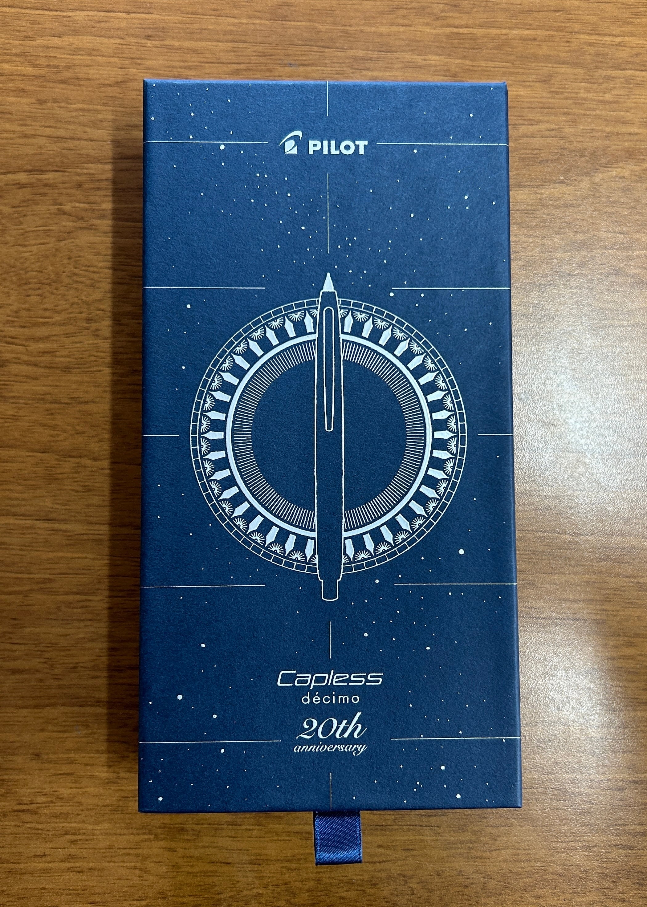 ノック式万年筆「キャップレス・デシモ」の発売20周年を記念し、世界で3000本限定で発売された商品です。